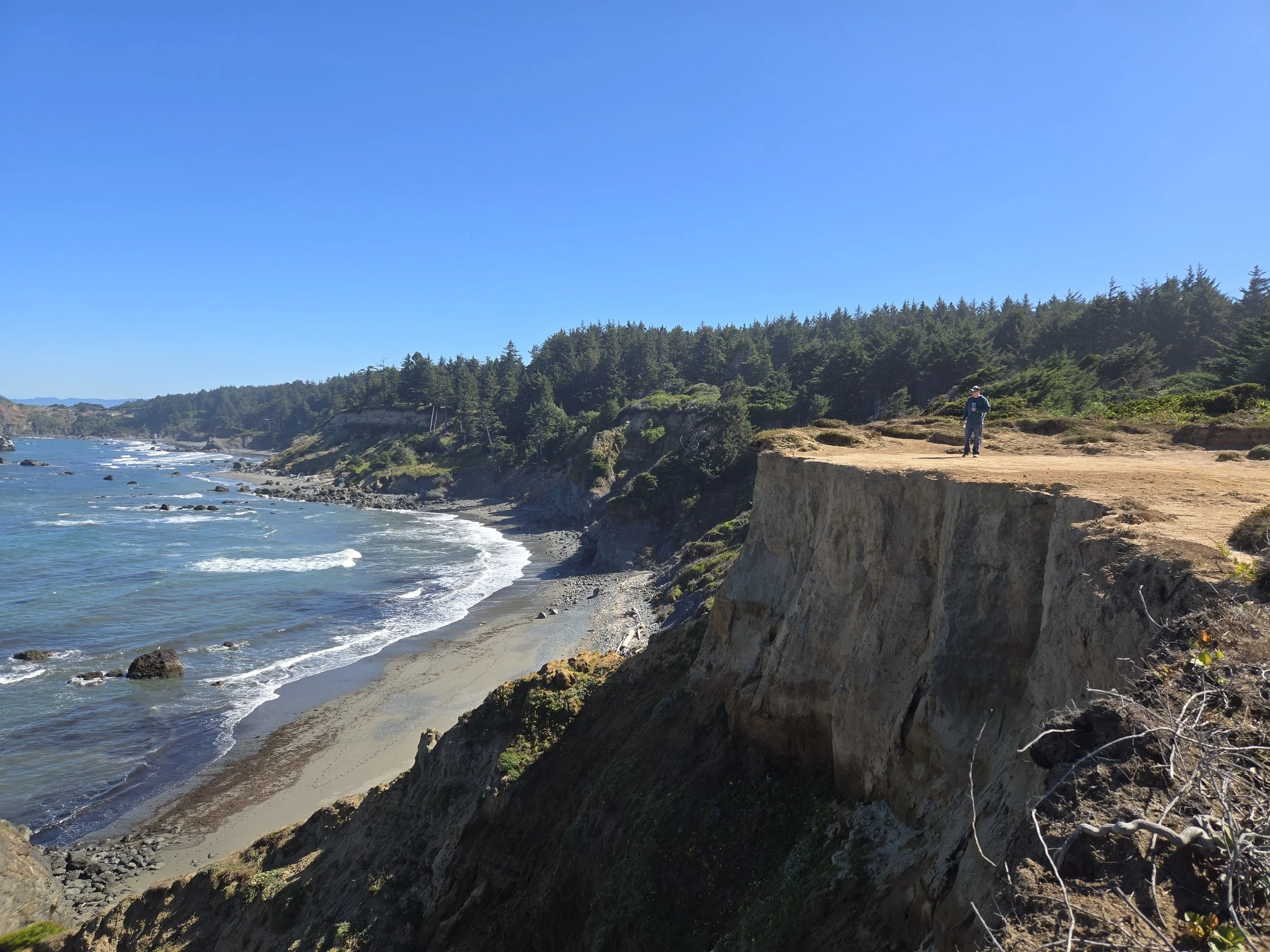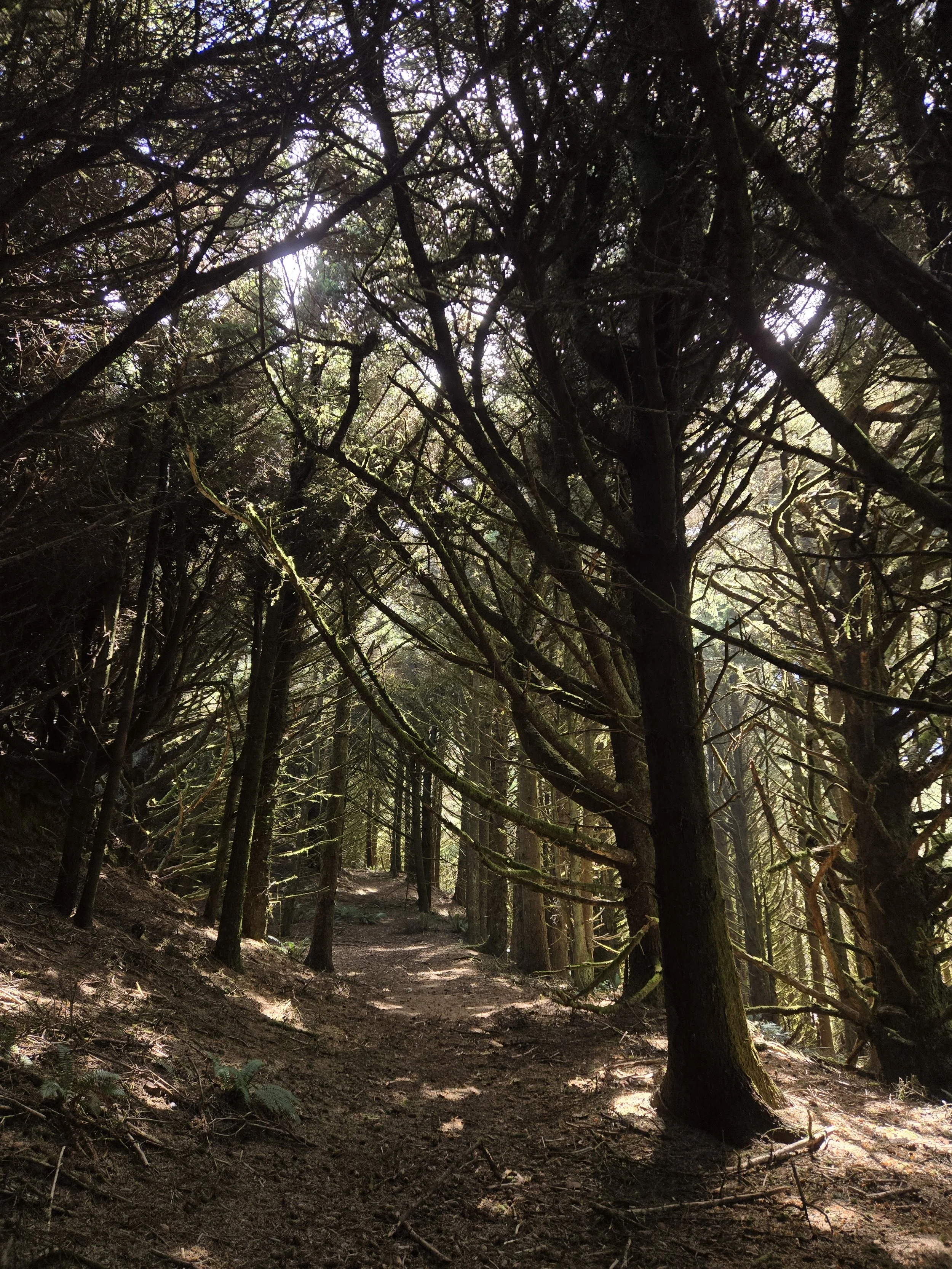 Switchbacks take you down through spooky old woods with gorgeous viewpoints of the rugged coast and vast ocean. The trail is 1.9 miles to a smaller steeper trail taking you down to the beach. We didn't go all the way to the beach this time due to time constraints but the views along the trail are worth the trek! It is considered a 'moderately" challenging route but that's because the rope you use to assist you in getting to the beach at the end. It's fairly mild, all downhill on the way there, all slightly uphill the entire way back- I’m saying you'll sweat on the way back but it's a beautiful hike.