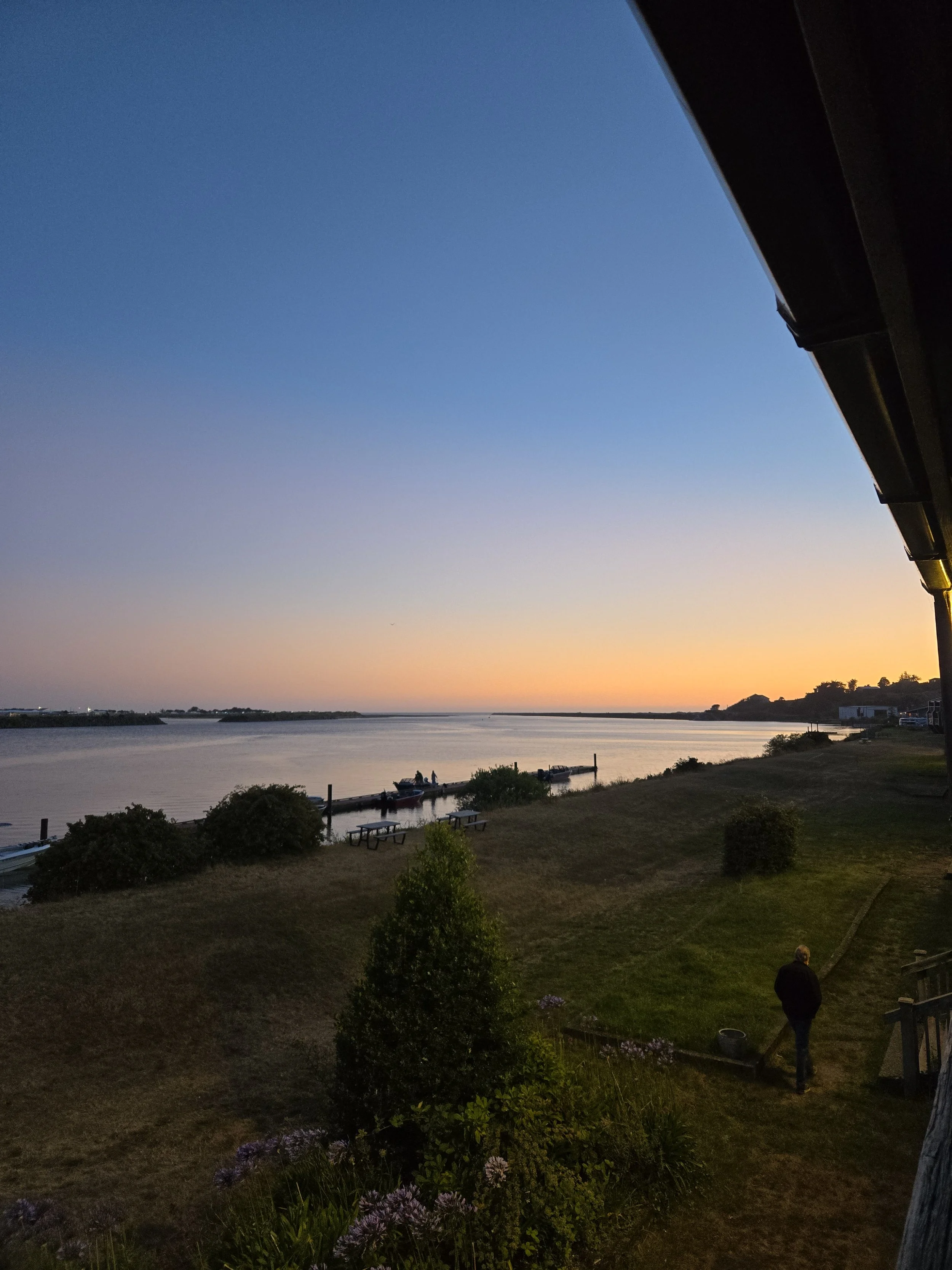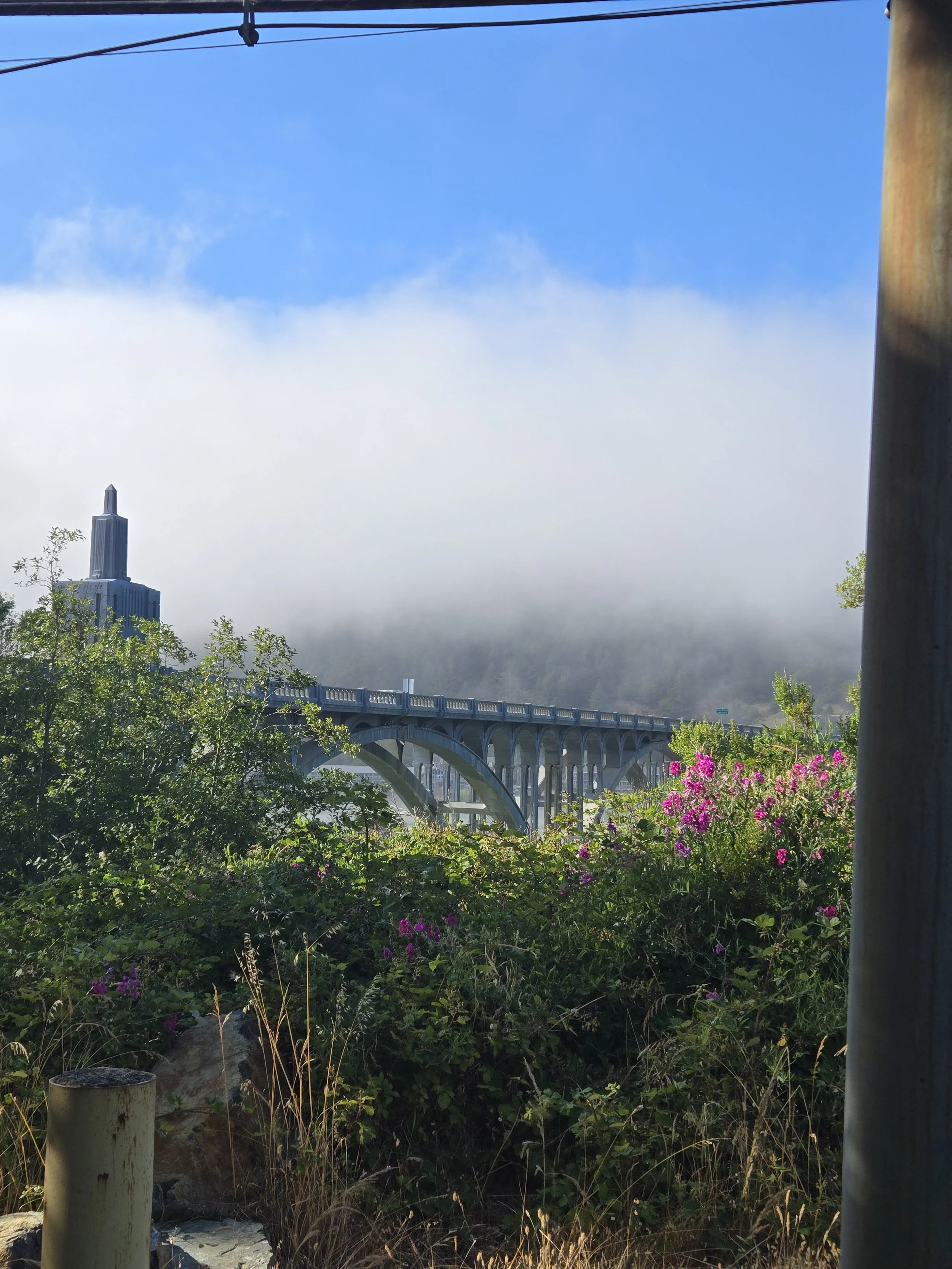 Tired from the day's drive, we decided to take a walk to get dinner at The Porthole Cafe which was across the river at the Gold Beach Port. The restaurant was less than a mile away from us, and the walk there takes you over the bridge for some amazing views of the river, the sea, and all the pelicans! Typically not a very beautiful bird- watching them soar above you over the bridge then swoop down riding the wind was a spectacle. After crossing the bridge we took the Riverside trail that looped under the bridge and followed the river the rest of the way to the Port of Gold Beach. I feel like the photos do more justice than my words. We enjoyed the walk so much we did it everyday instead of driving to the port.