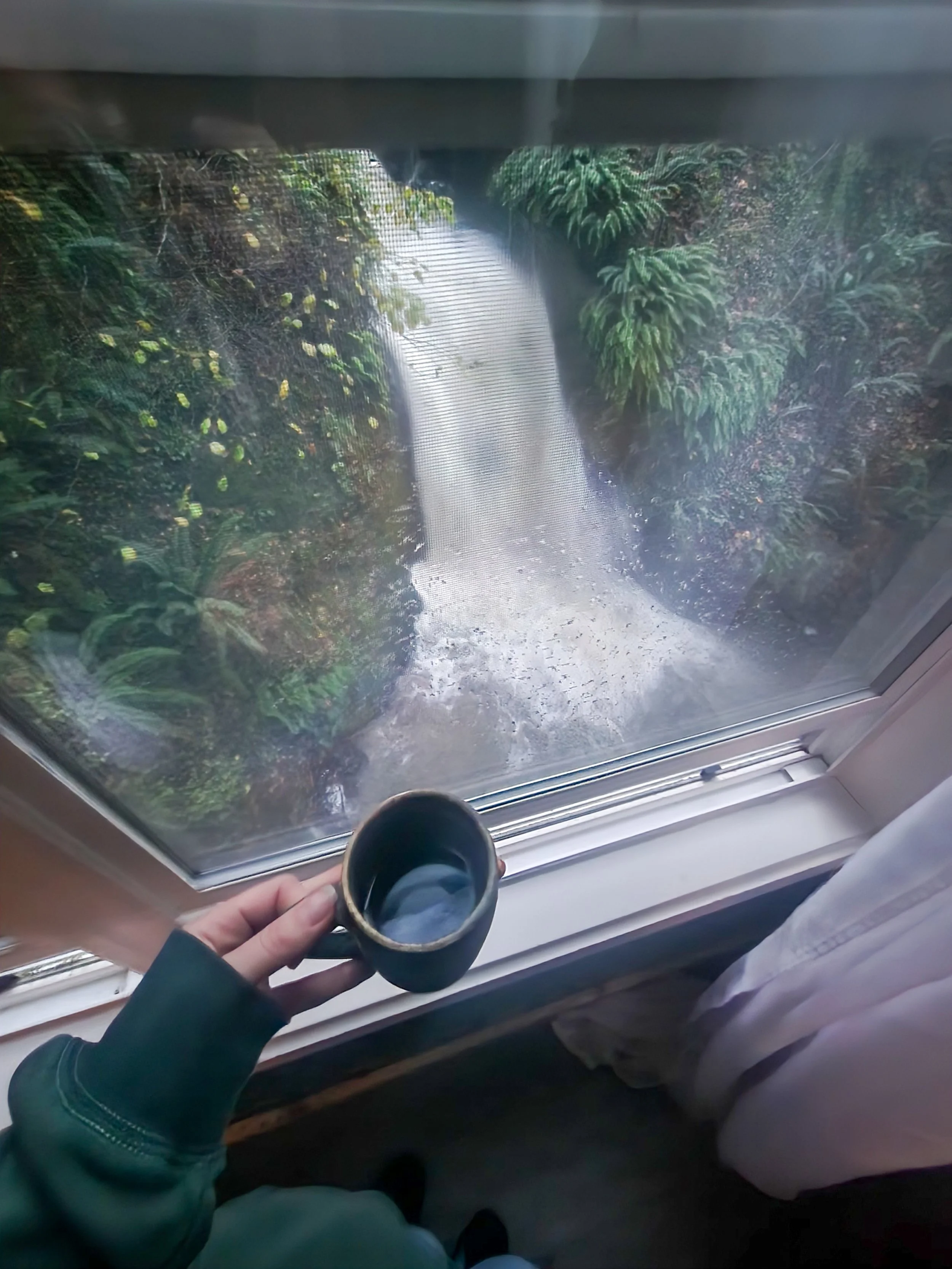 Sure, there’s no full kitchen. The bathroom has an RV-style toilet. But you’re in a treehouse watching water crash down ten feet away. Trust me—you won’t miss the stove.